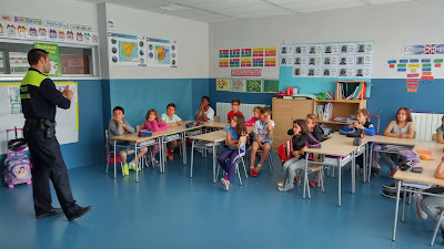 El pasado miércoles vino Carlos, policía local, y nos contó al alumnado de 4º B de Ed. Primaria de una forma muy divertida lo importante que es la Educación Vial para prevenir accidentes.